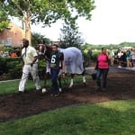 Horseless winner’s circle after Avarice is elevated to first via disqualification in the Fort Delaware. George Strawbridge (center) presents to trainer Jerry Robb (far left).