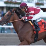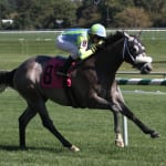 Posse Dreamin wins the Jersey Juvenile Stakes at Monmouth Park. Posse Dreamin is trained and owned by Edwin Broome and was bred by him in New Jersey. Photo by Bill Denver/Equi-Photo.