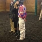 Happy Eighttofasttocatch trainer and jock interviewed by Gabby Gaudet. Photo by The Racing Biz.