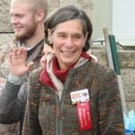 Trainer, co-breeder, and co-owner Katy Voss was all smiles after Corvus won the Maryland Million Nursery — and again after the Commission ruled in Corvus’ (and Voss’s) favor. Photo by The Racing Biz.
