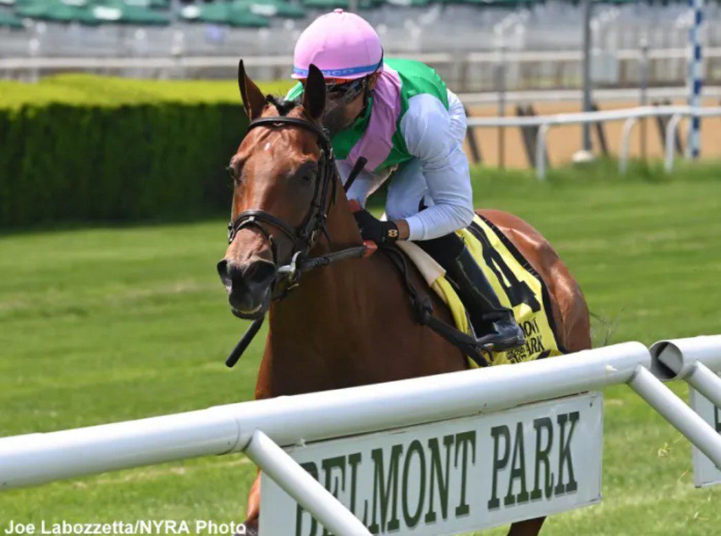 “I’m definitely excited to see what he can do on the grass. He’s an amazing feeling horse,” she said. “When I saw he was a Kingman, and I saw his back form, I was like, ‘Oh my God, I can’t wait to get him on the grass again and see him fly.’”
