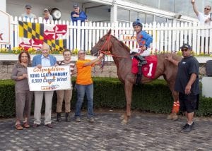 Trainer King T. Leatherbury logged the 6,500th win of his career when Happy Lantern scored at 16-1 at Laurel Park.