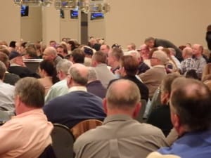 A crowd estimated to be near 400 people attended Friday’s town hall meeting at Laurel Park to discuss the future of Maryland racing.