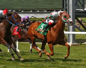 Improving five-year-old Sheer Drama earned her first Grade 1 win with a two-length score in today’s Delaware Handicap.