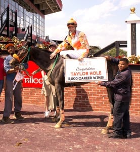Jockey Taylor Hole recorded his 2,000th career win when he guided Dr. Bolt to victory today at Pimlico Race Course.