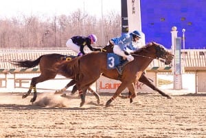 Chi Chi’s Pride stumbled, and rider Trevor McCarthy lost both his irons. No problem: the apprentice steered the horse to a nose victory without ’em.