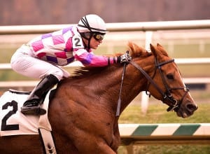 Jessethemarine was antsy in the paddock and well behind the early pace, but he rallied strongly to upset the James F. Lewis III Stakes.